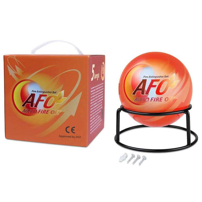 Llévate ahora un practico extintor de fuego ideal para el uso en el hogar, empresas y negocios. El extintor de bola AFO es un supresor de fuego empaquetado en una bola compacta y ligera que se auto-detona 3 a 5 segundos después de entrar en contacto con el fuego (Estalla a 70°C) y dispersa químicos no tóxicos para extinguir las llamas en una zona con un radio cercano a los 26 metros cuadrados. La bola extintor AFO puede lanzarse directamente a la zona de fuego y como medida de mitigación se puede instalar con su cesta (incluida en el pack) en lugares estratégicos como tableros eléctricos, hornos, cerca de enchufes y lugares que sean susceptibles de incendios. La bola extintor AFO sirve para incendios de Clase A (combustibles ordinarios madera, papel etc.), clase B (Líquidos inflamables) y clase C (fuegos eléctricos energizados) combate y previene la propagación de incendios en el hogar o negocio. Es el producto de seguridad ideal contra incendios en su cocina, garaje, coche, barco, en la parrilla. Esta completamente recomendado para restaurantes, oficinas, tiendas de automóviles, instalaciones y fabricas. La bola extintor AFO es respetuosa con el medio ambiente, no es tóxica, segura para las personas y animales domésticos, La bola extintor AFO esta aprobada por el SGS. Actúa como una alarma cuando el AFO extingue y la bola detone, emitirá un gran sonido de 101,2 dB que puede actuar como una alarma. El paquete incluye: x1 Extintor fuego 1.3Kg x1 Soporte para extintor fuego