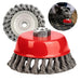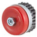hecho de alambres de acero de larga duración para minimizar las chispas y la rotura del alambre; el cepillo de taza tiene un eje universal para adaptarse a la mayoría de molinillos y un acabado de recubrimiento en polvo que resiste el óxido y la corrosión
