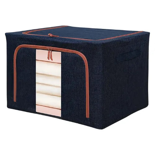 nuestros contenedores de almacenamiento de tela de apertura son fáciles de instalar, simplemente desenrolla los marcos de acero en ambos lados. Las asas reforzadas en ambos lados te permiten mover la caja sin esfuerzo, y las ventanas delanteras y laterales te ayudan a localizar rápidamente tus artículos.