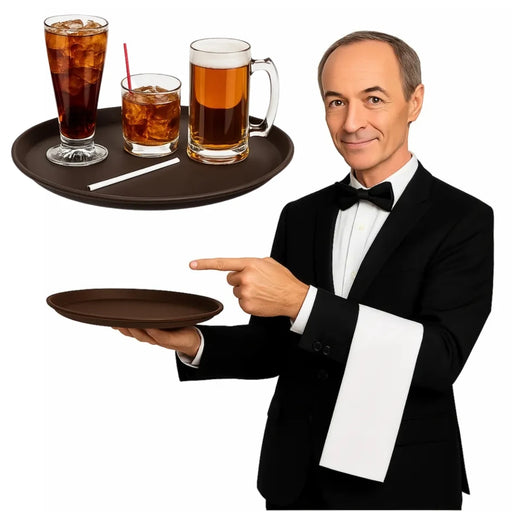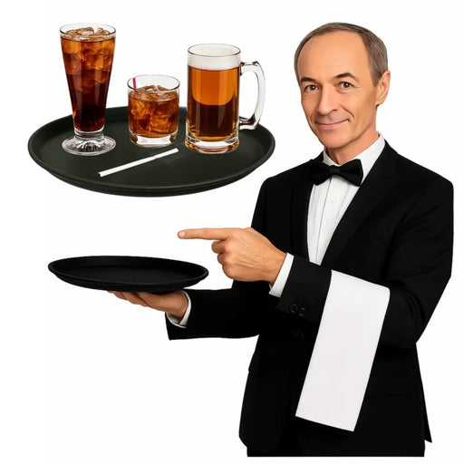¡Funcionalidad y elegancia en cada servicio! Esta bandeja redonda antideslizante de 45 cm es la aliada perfecta para bares, restaurantes, cafetería...