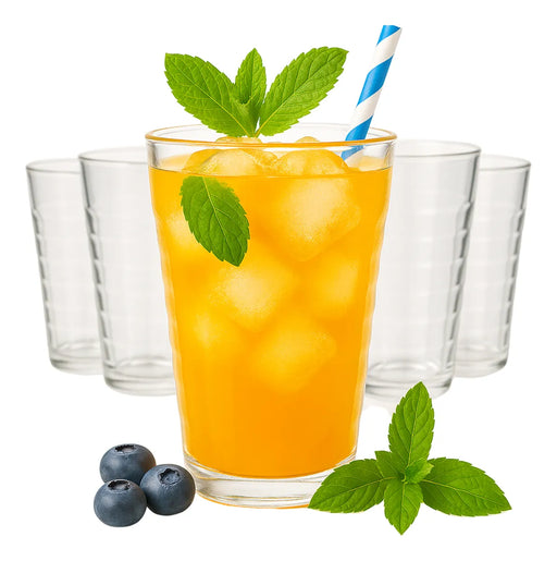 Lleva elegancia y funcionalidad a tu cocina o negocio con este set de 5 vasos con diseño estriado. Con capacidad de 300 ml, son perfectos para serv...