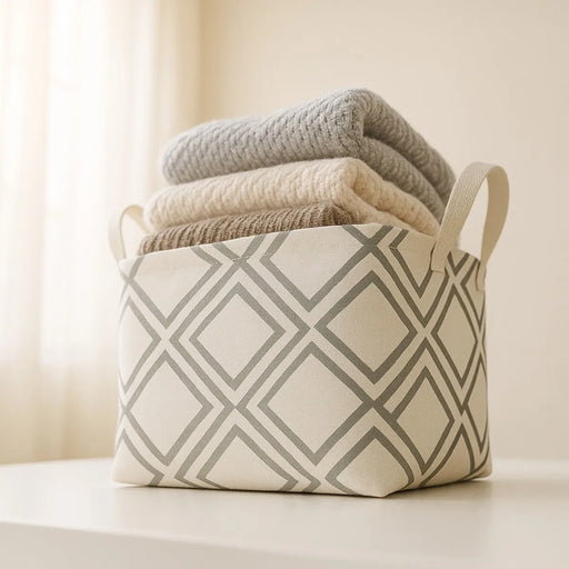 Este canasto organizador con diseño geométrico en tonos neutros es la solución perfecta para mantener el orden con estilo en cualquier ambiente del...