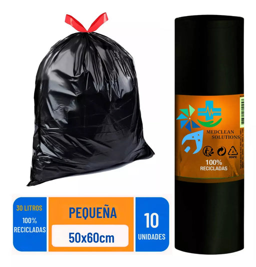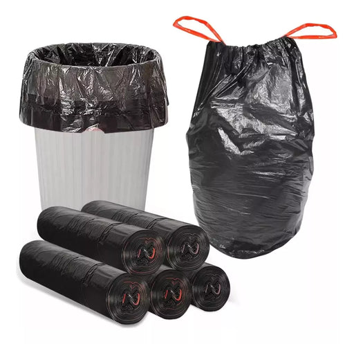 Pack 10 Bolsas de Basura con CordónExcelente calidad.Hecho con material recicladoAlta Resistencia.