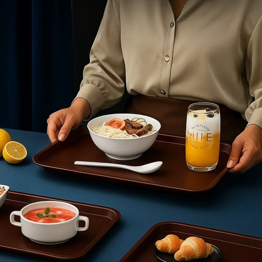 Diseñada para ofrecer eficiencia, limpieza y estilo, esta bandeja rectangular color café es la solución perfecta para restaurantes, cafeterías, cas...