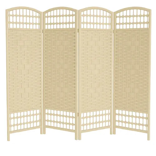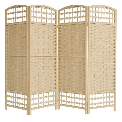 Transforma tus espacios con elegancia y funcionalidad gracias a este biombo separador de ambientes de 4 paneles. Fabricado con fibras naturales tej...